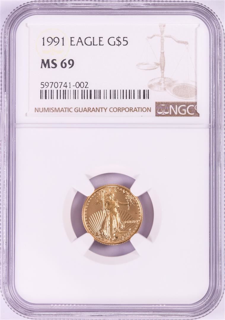 One 1991 $5 American Gold Eagle Coin NGC MS69. NGC Certified.