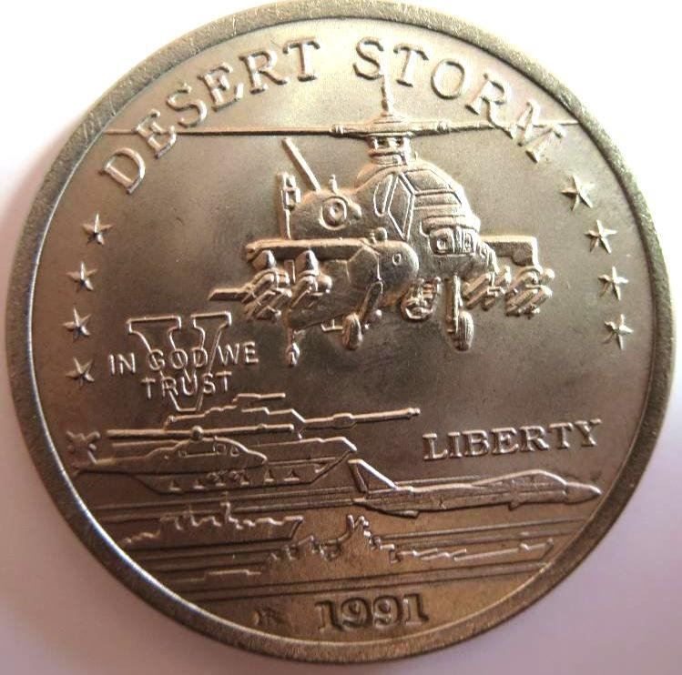 1991 $5 Dessert Storm Coin Apache Attack Helicopter