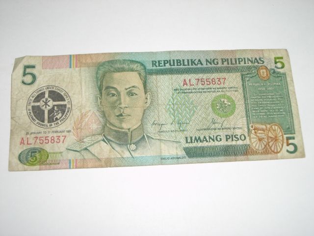 1991 5 LIMANG PISO *PHILIPPINES - REPUBLIKA NG PHILIPINAS*!! ***Coin, Currency & All Items Listed in this auction - Grades, Conditions and Values are not Safe Deposit Coins LLC Responsibilty. Grades, Condition and Values are determined by Consigner(s) & Buyers ONLY***