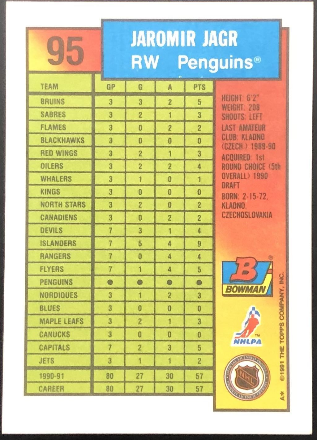 Card #95 NHL, hockey, hall of fame, rookie
