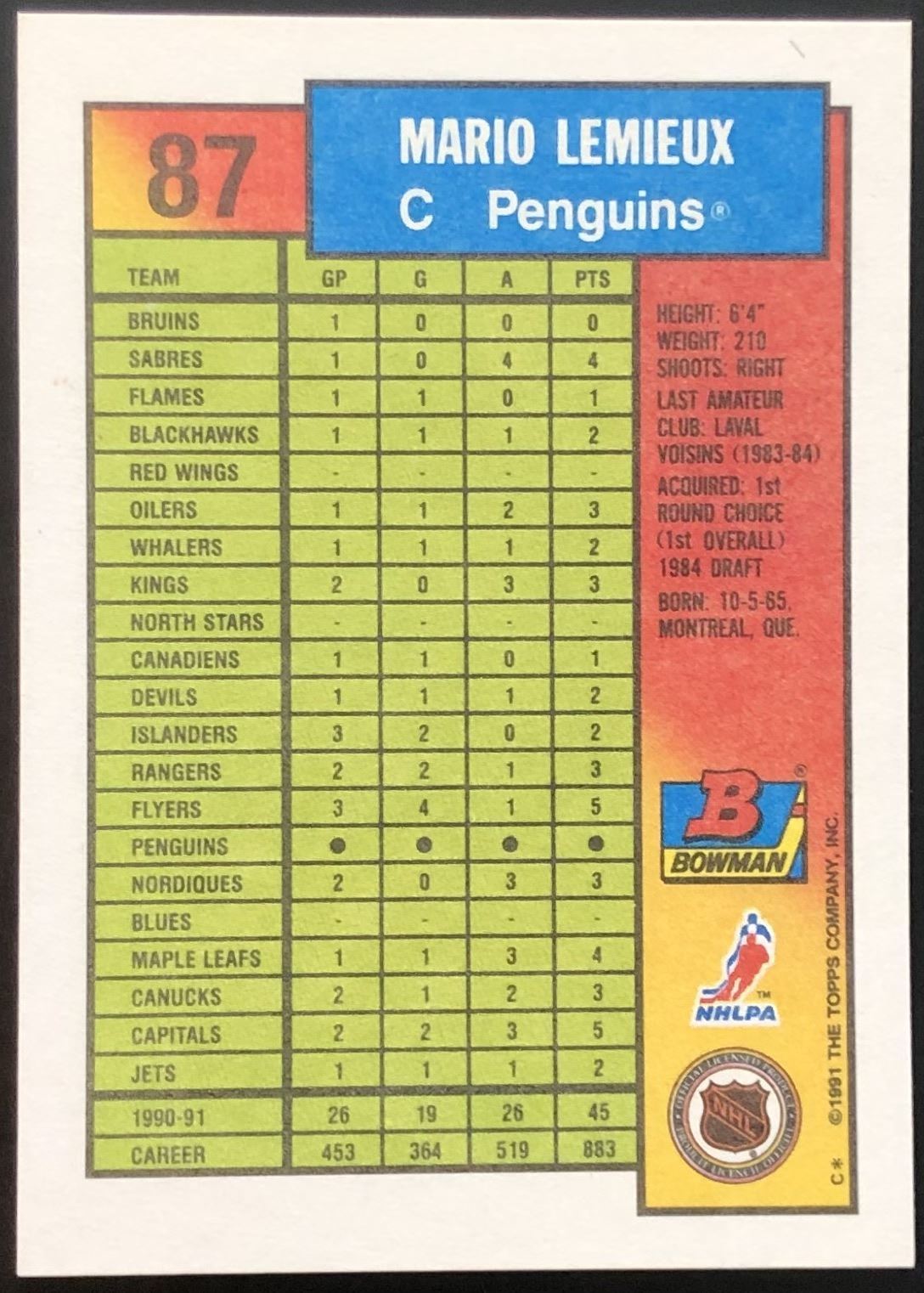 Card #87 NHL, hockey, hall of fame