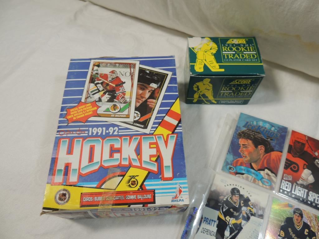 1991-92 O PEE CHEE HOCKEY CARDS WAX PACK BOX 1991 SCORE NHL ROOKIE & TRADED CARD SET HOCKEY PLAYER CARD. HOCKEY TRADING CARDS. COLLECTIBLE. GOOD CONDITION. GREAT CONDITION. AS SHOWN. SEE PHOTO FOR MORE DETAILS.