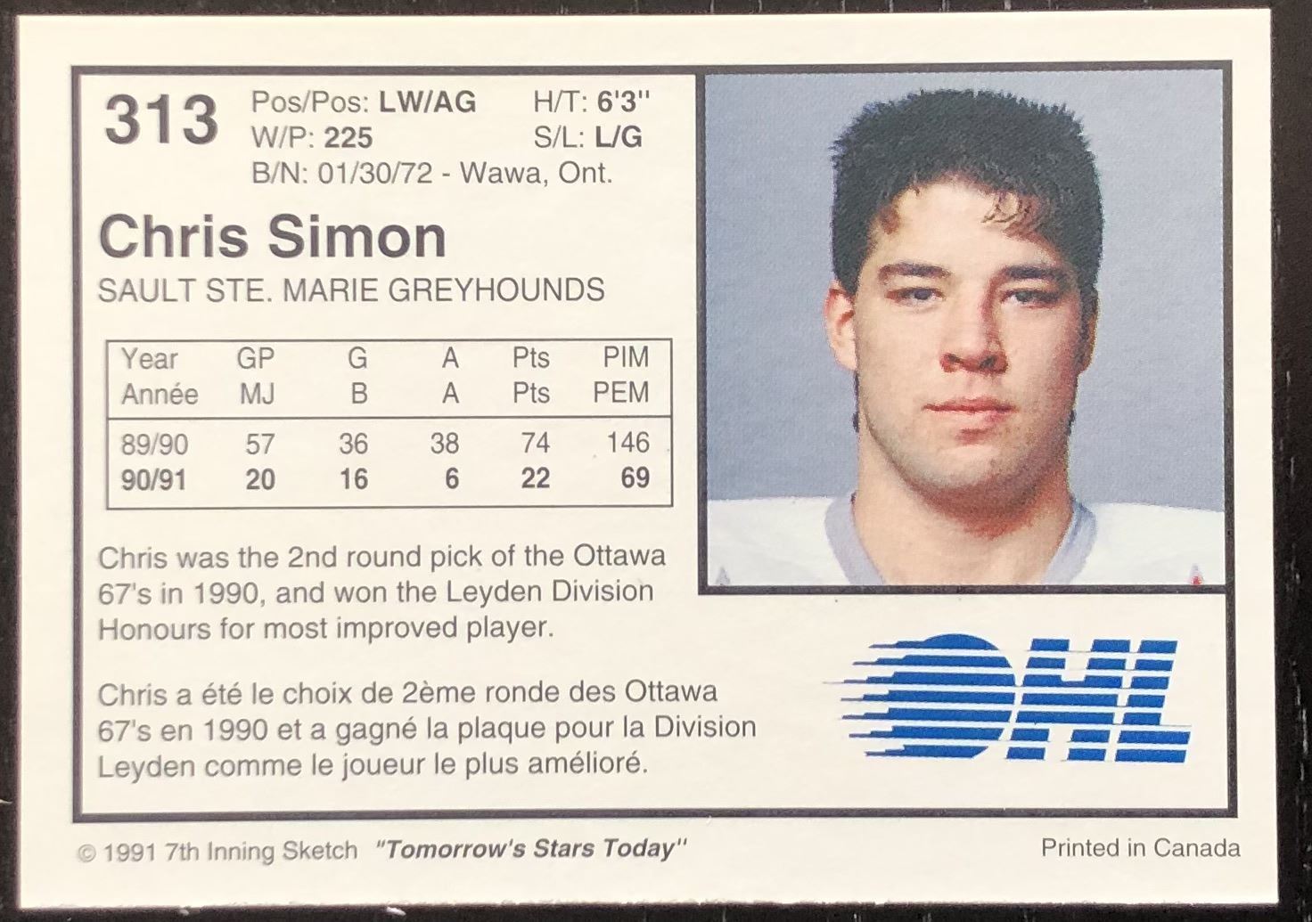 Card $313, issued by 7th Inning Sketch OHL, CHL, NHL, hockey, rookie