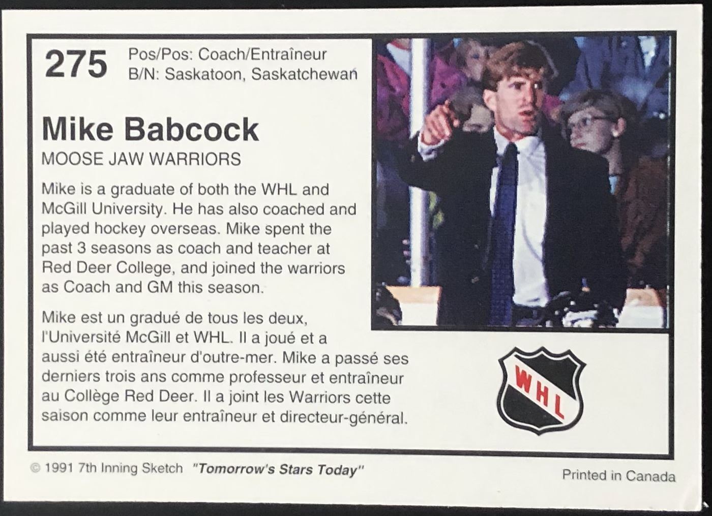 Card #275, 7th INNING SKETCH MOOSE JAW WARRIORS CHL, WHL, hockey