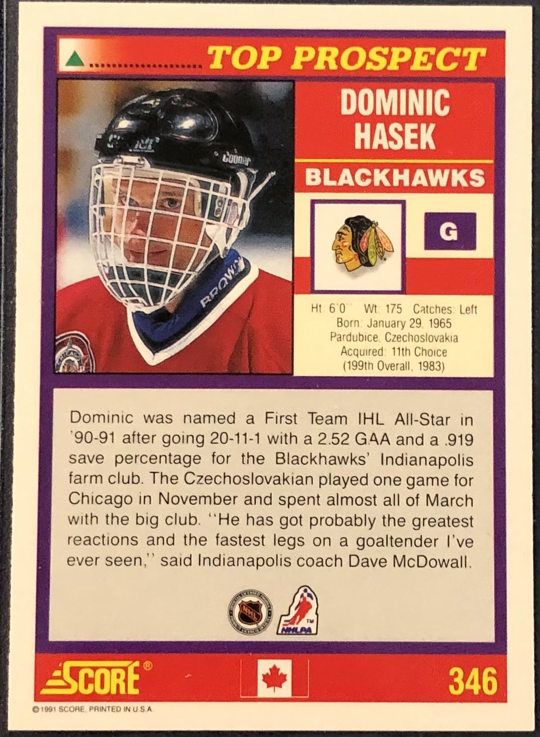 Card #346 NHL, hockey, rookie, hall of fame