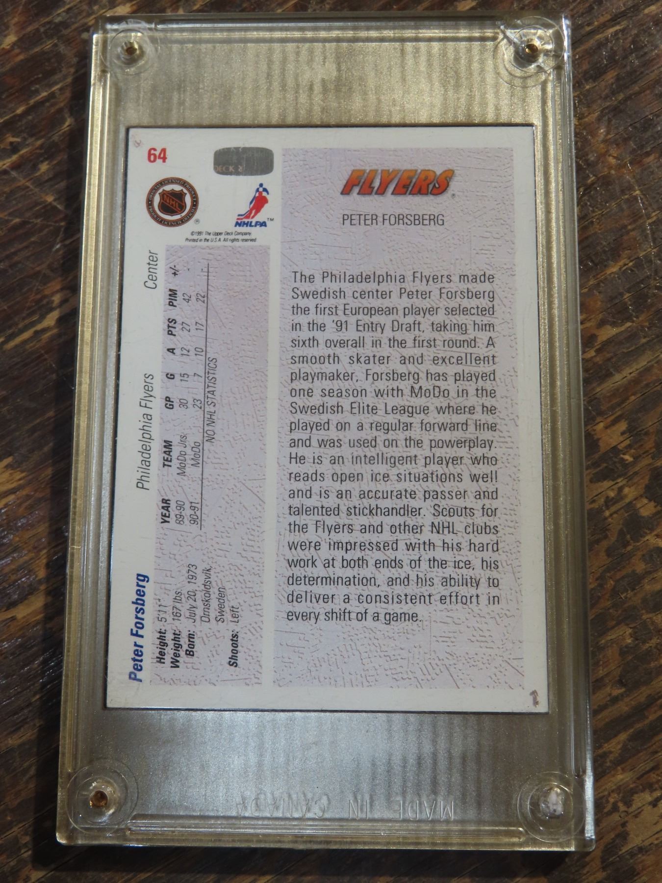 1991-92 UD Hockey PETER FORSBERG RC IN SCREW DOWN CASE