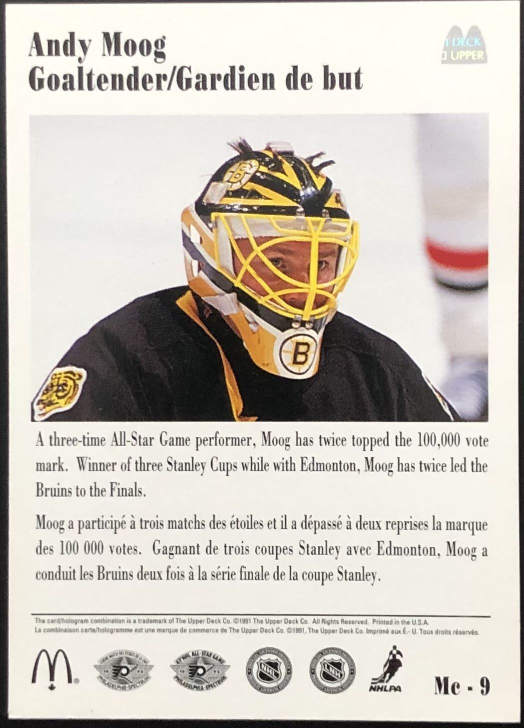 McDonald's card #9 NHL, hockey, UD, regional