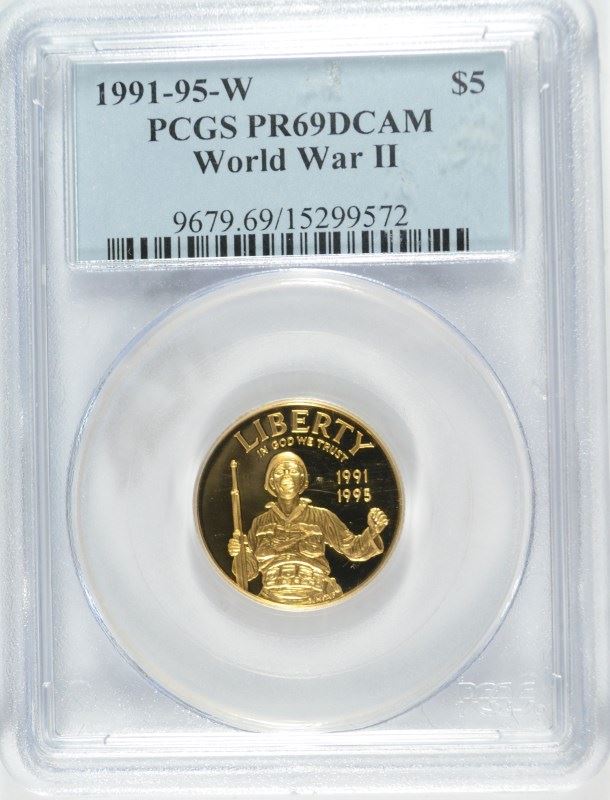 1991-95 $5 GOLD COMMEN (WORLD WAR II) PCGS PR-69 DCAM