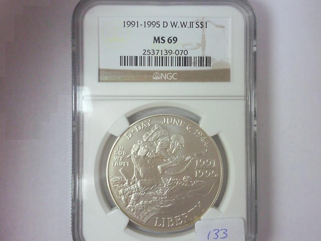 1991-95-D WWII SILVER DOLLAR NGC MS69