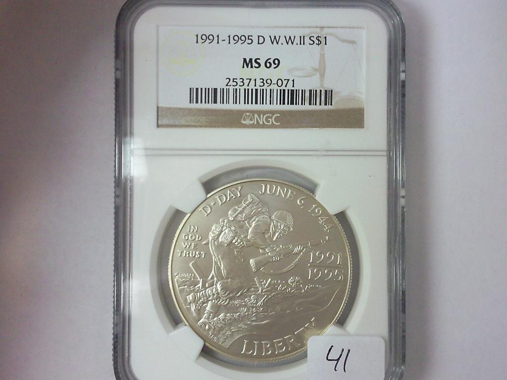 1991-95-D WWII SILVER DOLLAR NGC MS69
