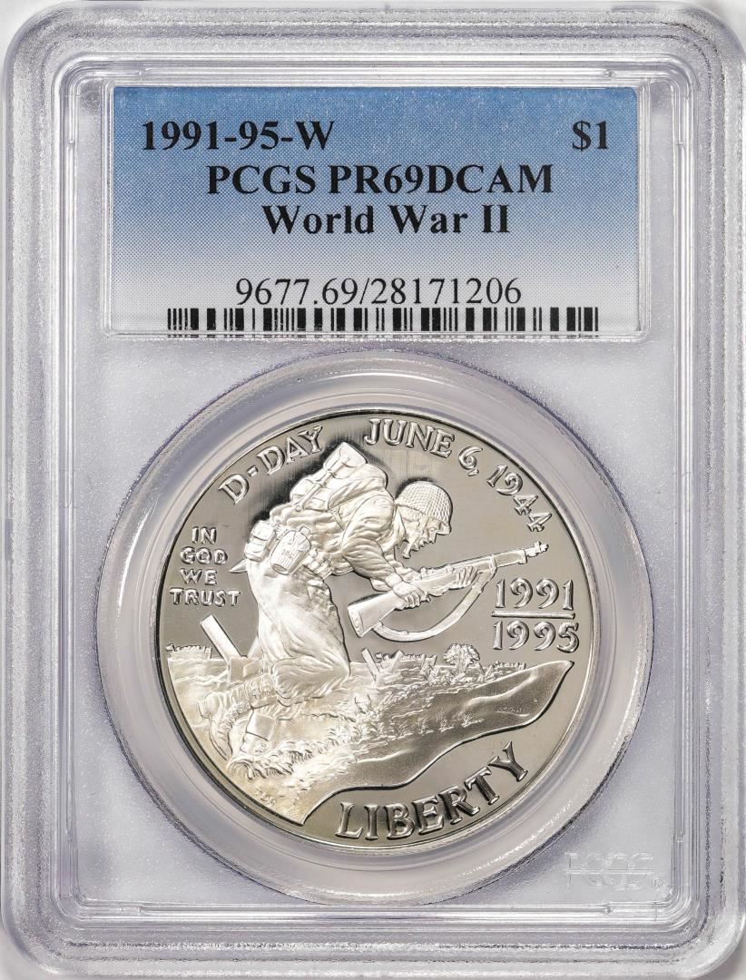 1991-95-W $1 Proof World War II Commemorative Silver Dollar Coin PCGS PR69DCAM