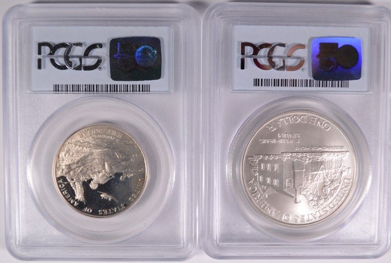 1991-95 WWII COMMEM HALF DOLLAR PCGS PR69 & 1990-W IKE COMMEM DOLLAR, PCGS MS-69