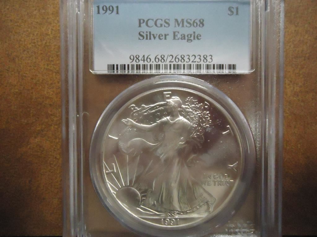 1991 AMERICAN SILVER EAGLE PCGS MS68