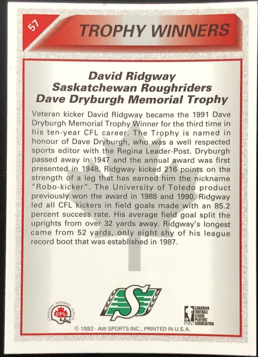 Card #57 CFL, football, hall of fame