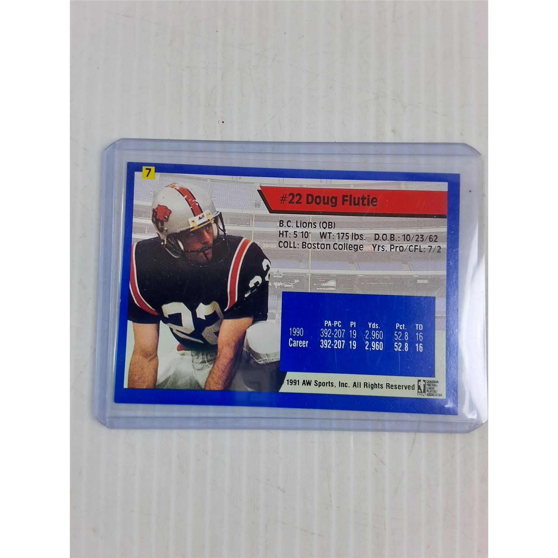 1991 AW Sports Doug Flutie CFL Rookie Card - Cannot Guarantee Authenticity