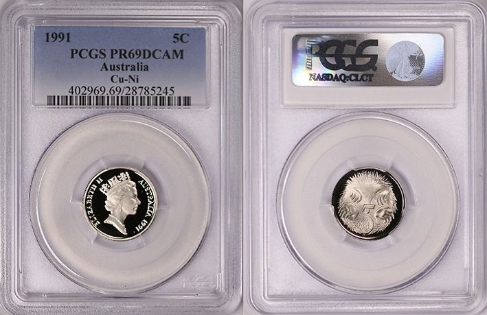 1991 Australian Five Cent - PCGS PR 69DCAM
