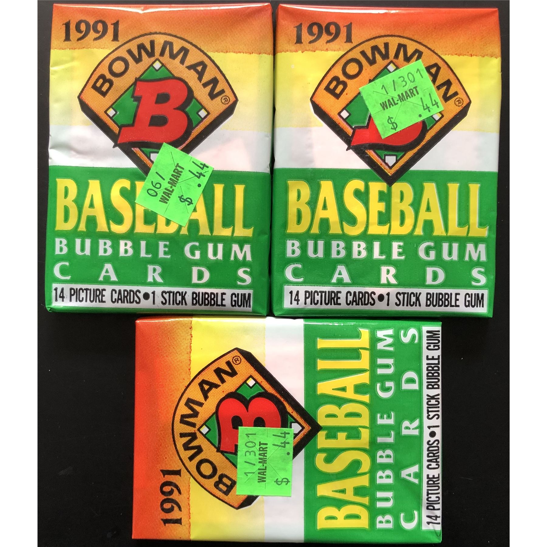 Three sealed wax packs, each containing 14 cards MLB, baseball
