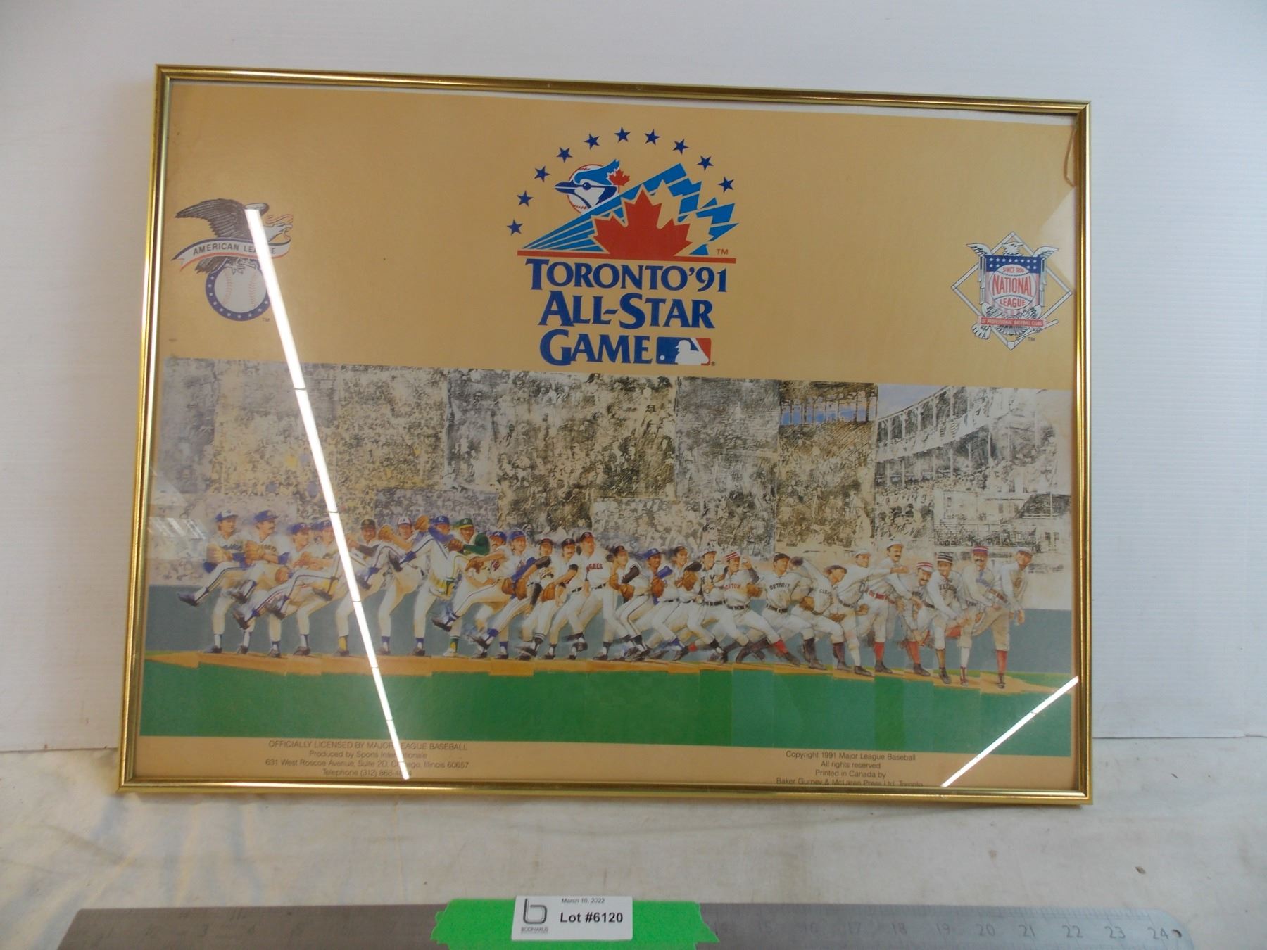 1991 Blue Jays All Star Game poster in frame (frame dammaged in corner)