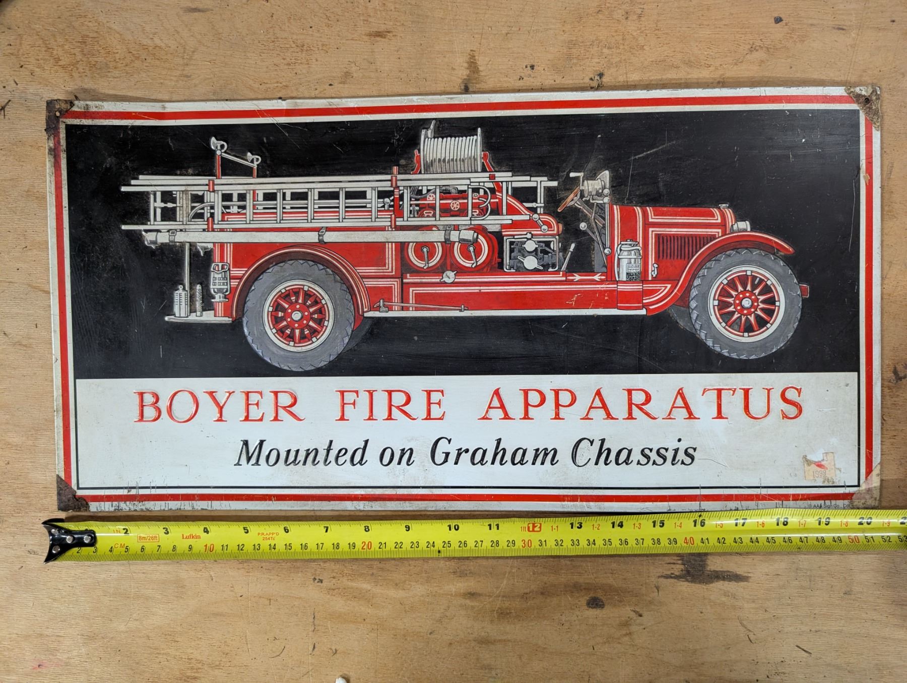 1991 "Boyer Fire Apparatus" 20"x10" Sign Reproduction