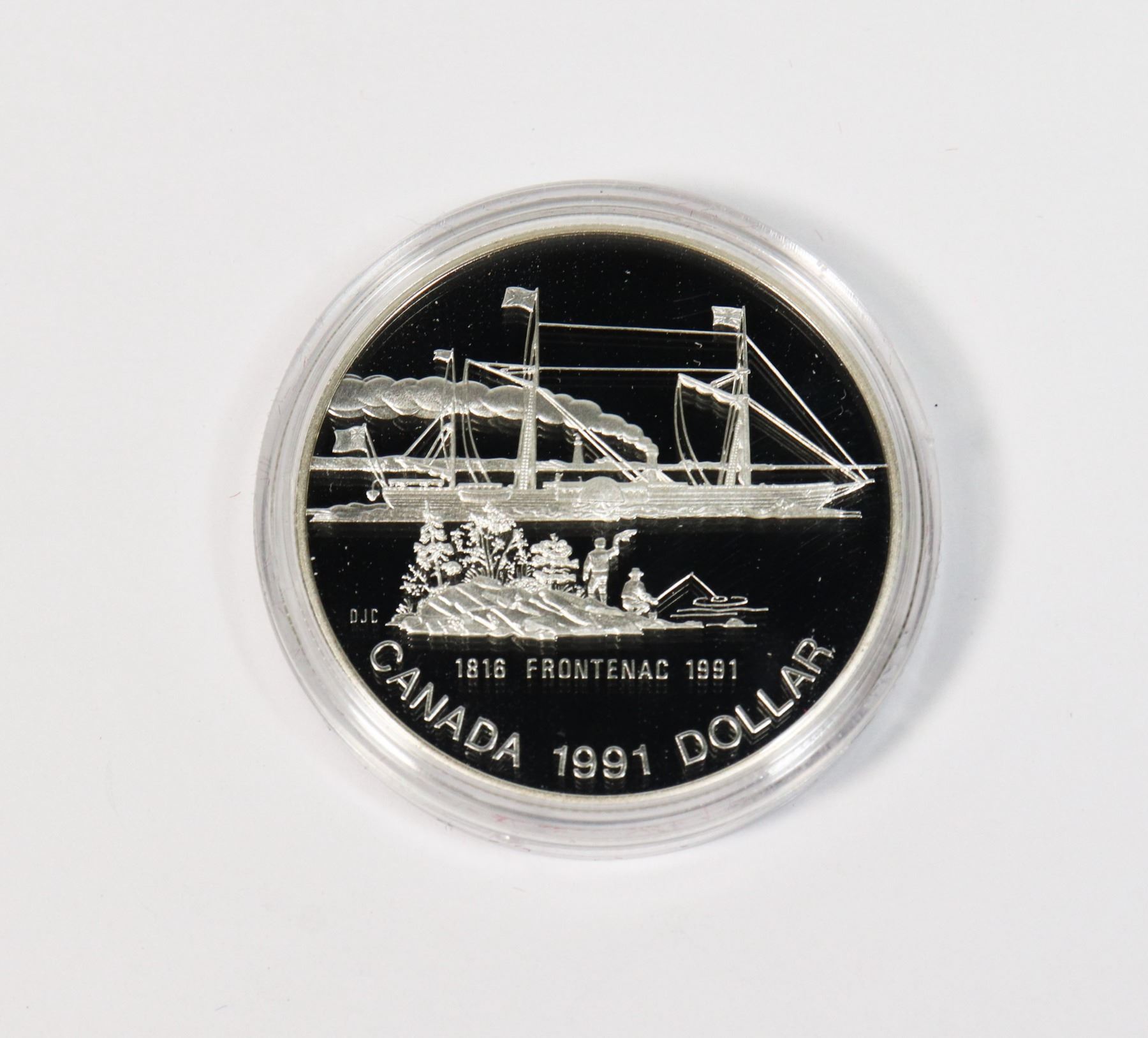 PAPERWORK. THIS PROOF DOLLAR MARKS THE 175TH ANNIVERSARY OF THE LAUNCHING OF THE STEAMER FRONTENAC IN 1816