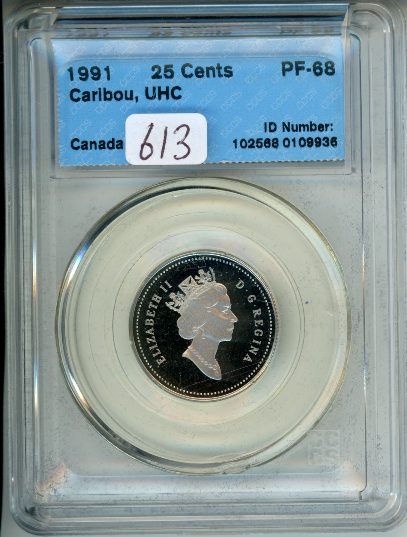 1991 CCCS graded, Canadian proof like 25 cent coin - PF68 UHC