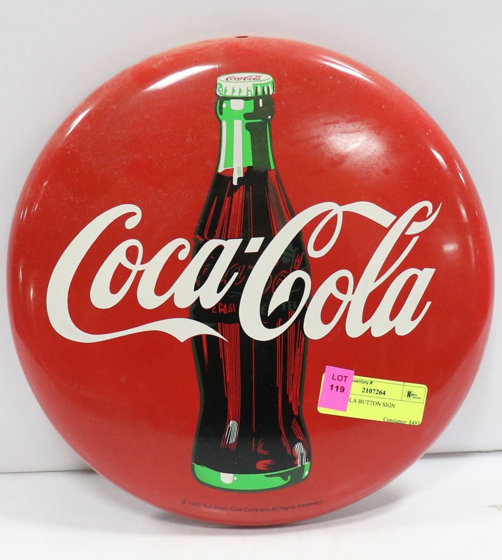1991 COCA-COLA BUTTON SIGN APPROX DIAMETER 12"