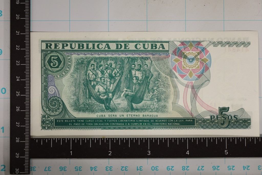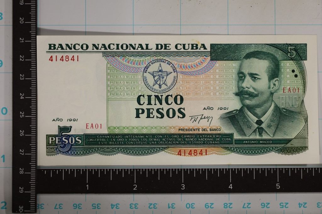 1991-CUBA 5 PESO CRISP UNC COLORIZED BILL