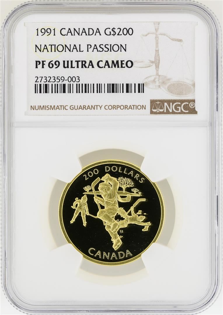 One 1991 Canada $200 National Passion Gold Coin NGC PF69 Ultra Cameo. NGC Certified.