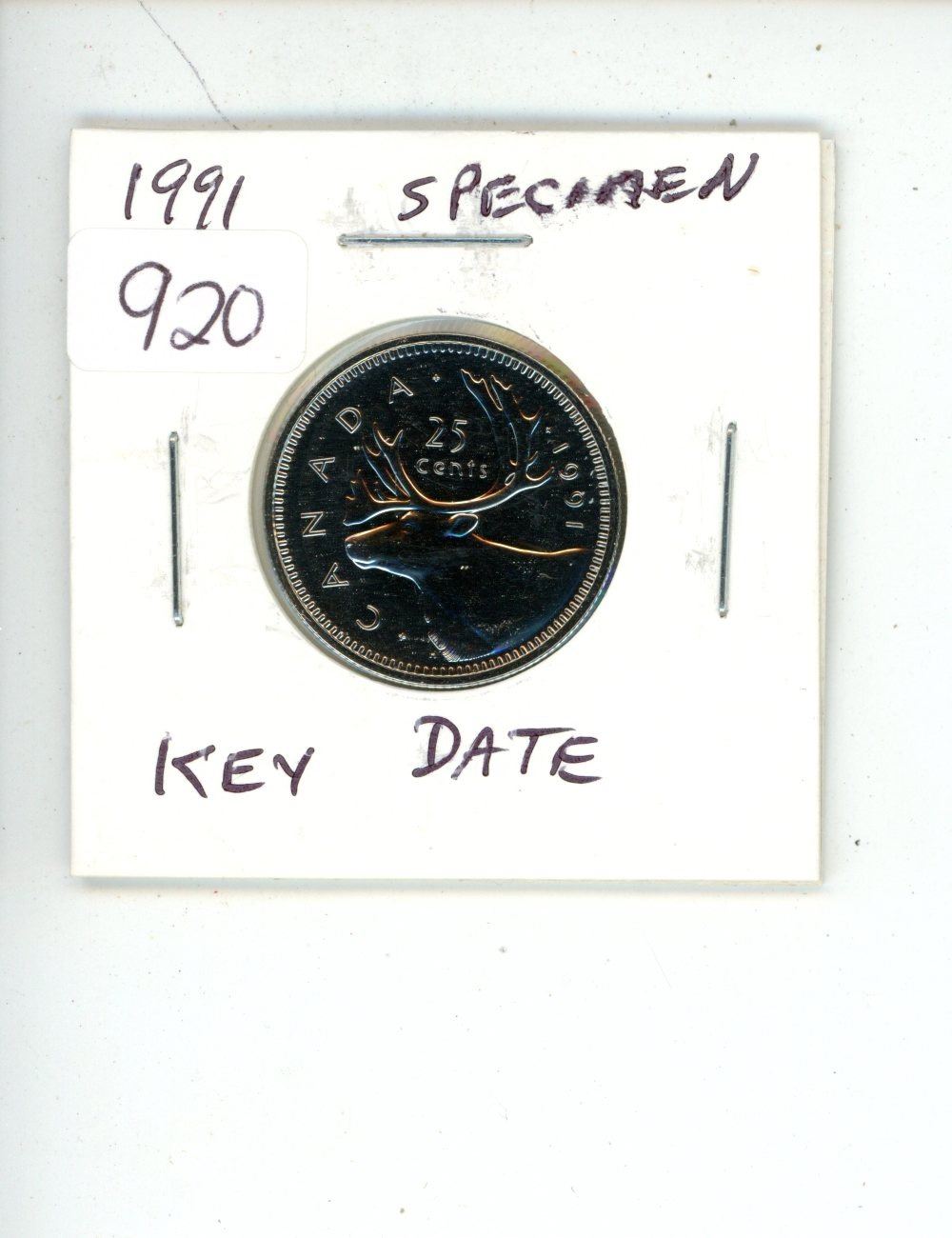 1991 Canadian 25 Cents. Specimen-66. Key Date. Nice.