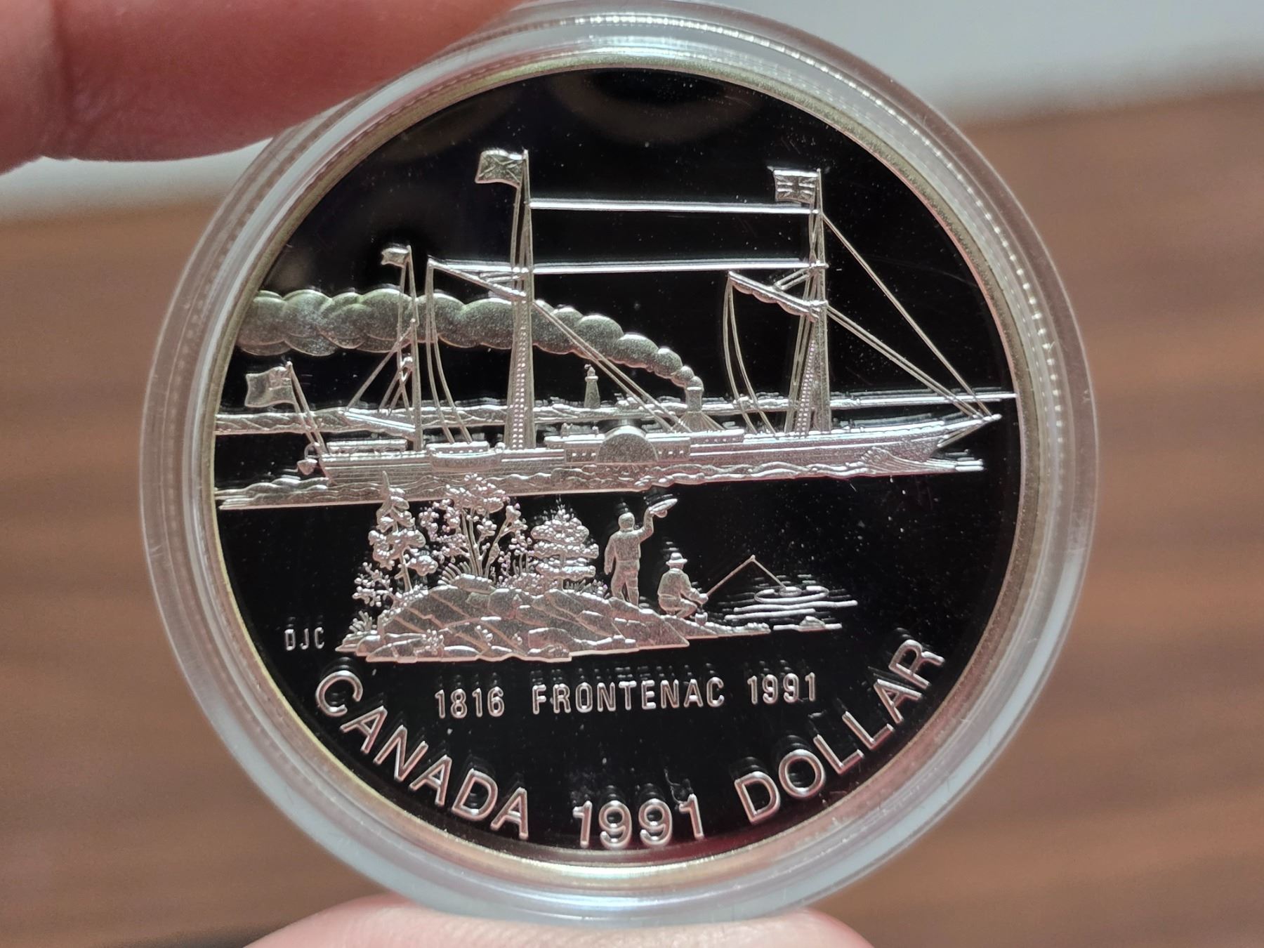 1991 Canadian "Frontenac" silver proof dollar, in RCM case.