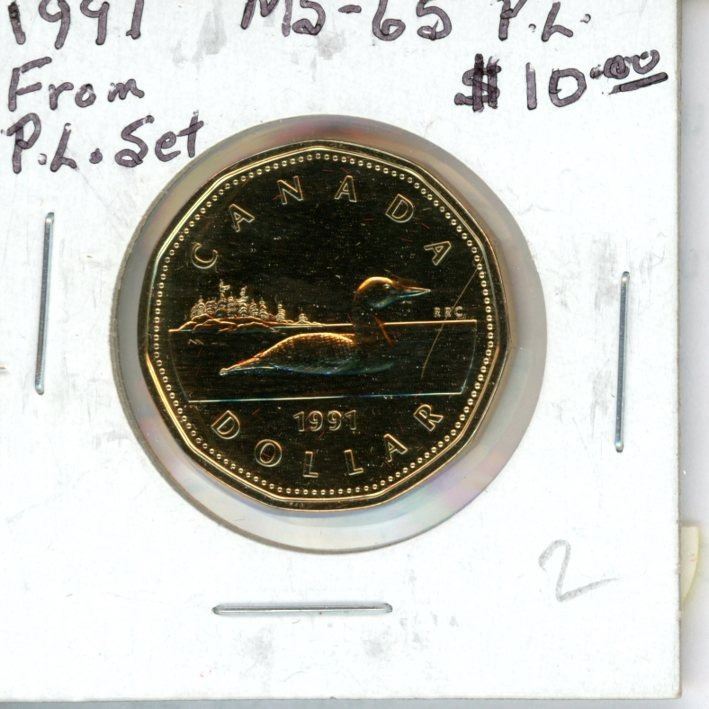1991 Canadian Loon. Proof Like-65. Taken from a PL set. Nice.