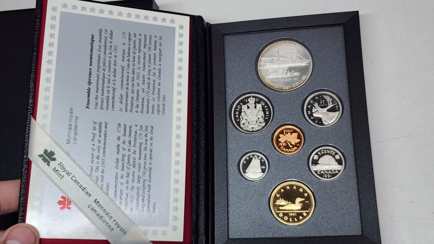 1991 Canadian double dollar 7 coin proof set - Frontenac silver dollar - in case