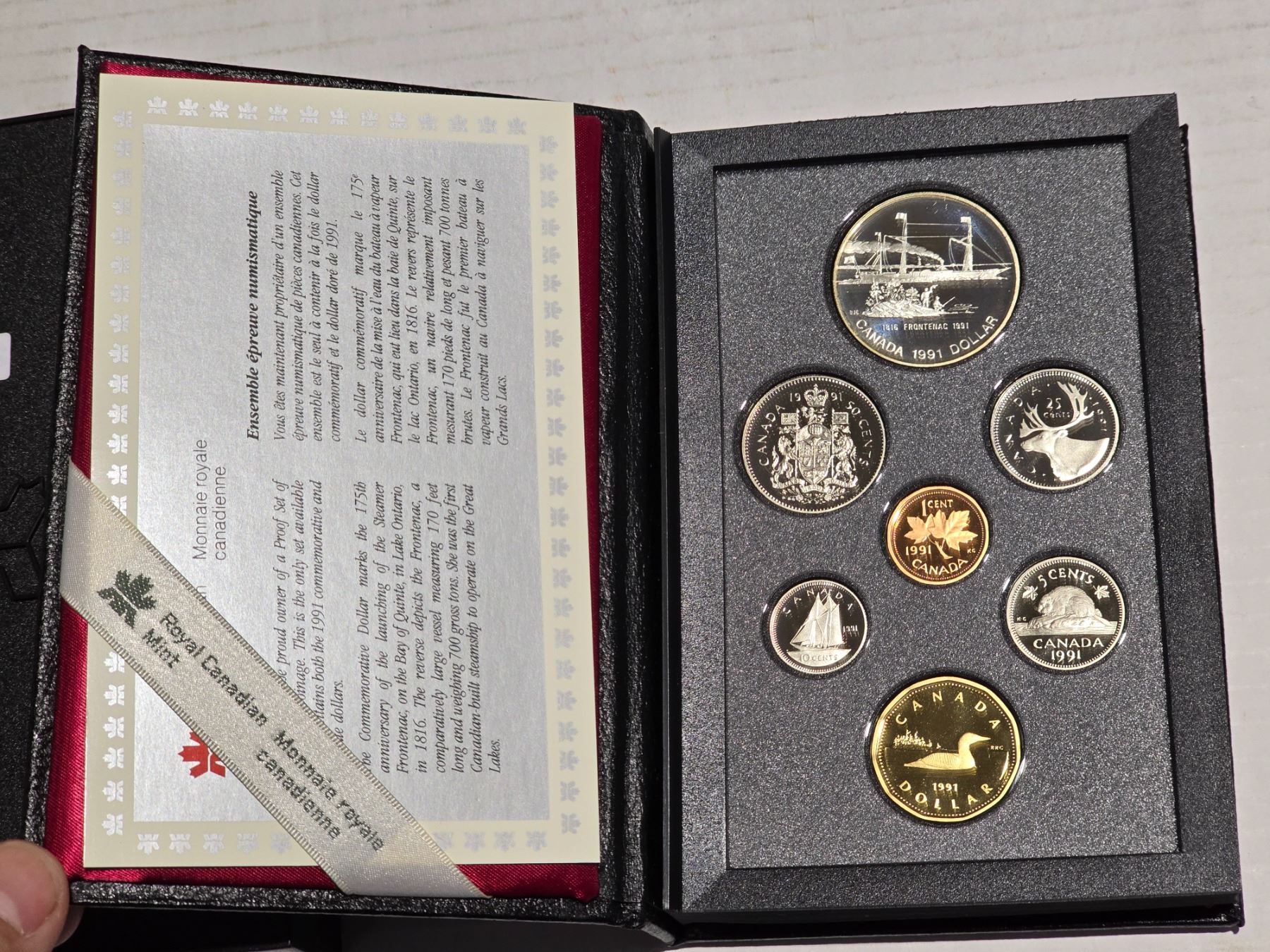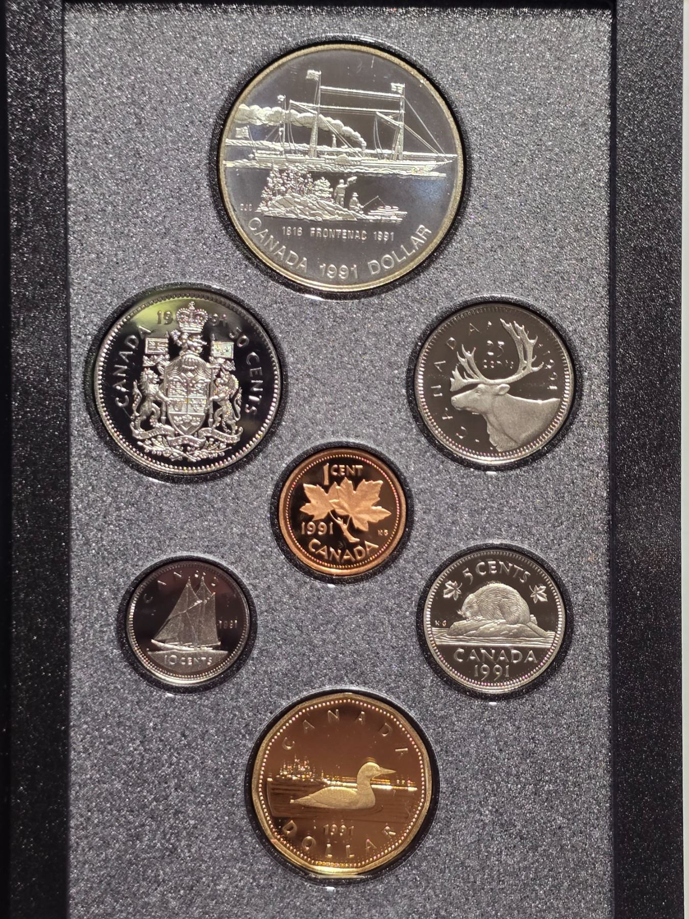 1991 Canadian double dollar 7 coin specimen set. Includes "Frontenac" silver dollar