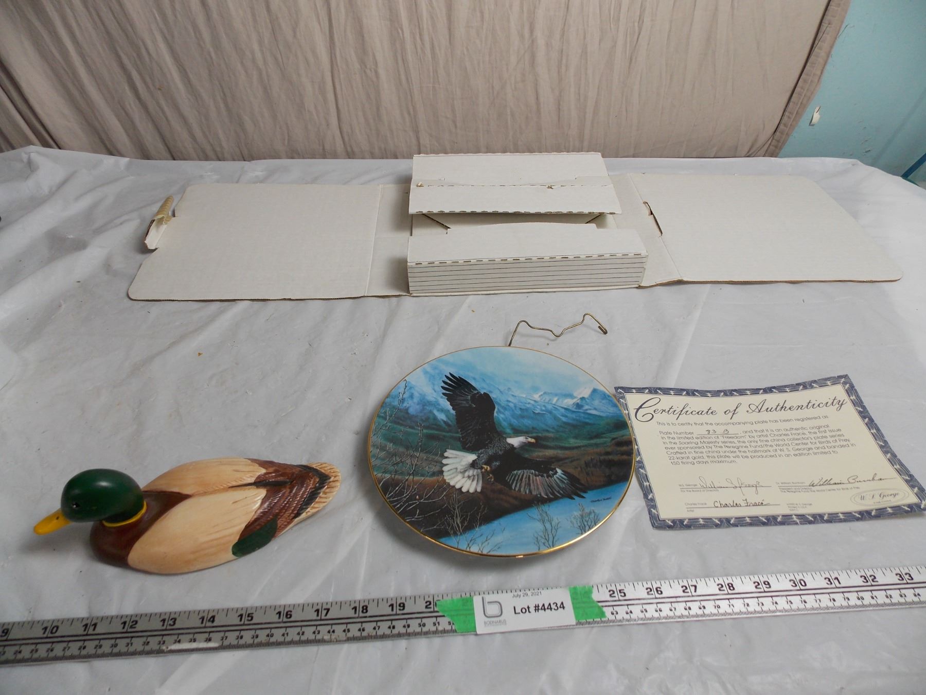 1991 Charles France Soaring Majesty Collector Plate Number 83B with Certificate and Ceramic Duck Ornament