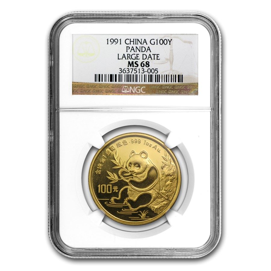 1991 China 1 oz Gold Panda Large Date MS-68 NGC