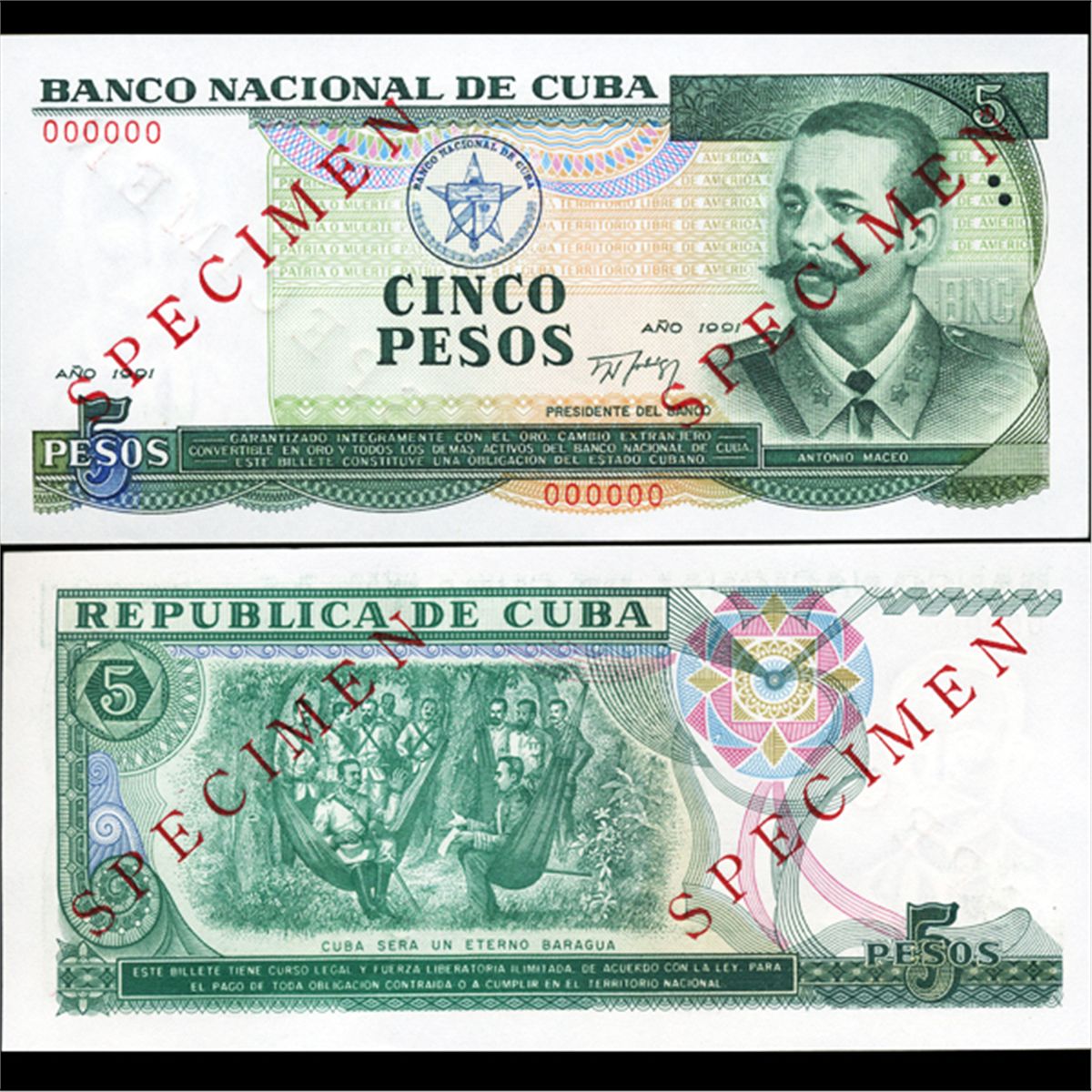 1991 Cuba 5 Peso Specimen Note Crisp Unc. (CUR-06369A)