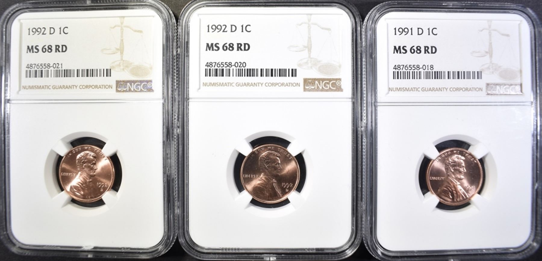 1991-D & 2-92-D LINCOLN CENTS, NGC MS-68 RED