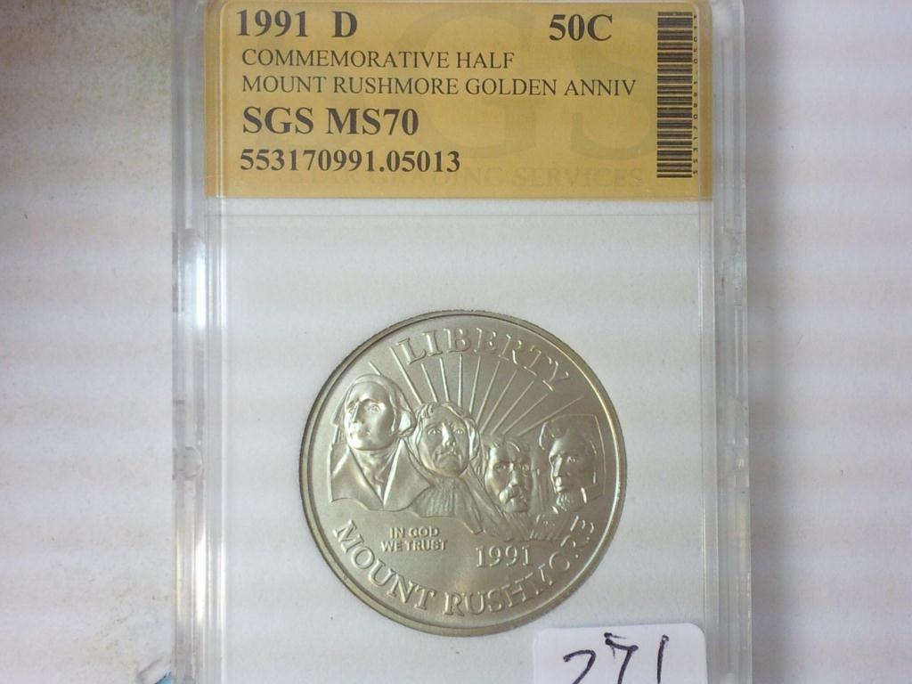 1991-D MT. RUSHMORE HALF DOLLAR SGS MS70