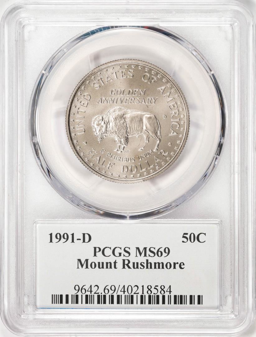 One 1991-D Mount Rushmore Half Dollar Coin PCGS MS69. PCGS Graded.