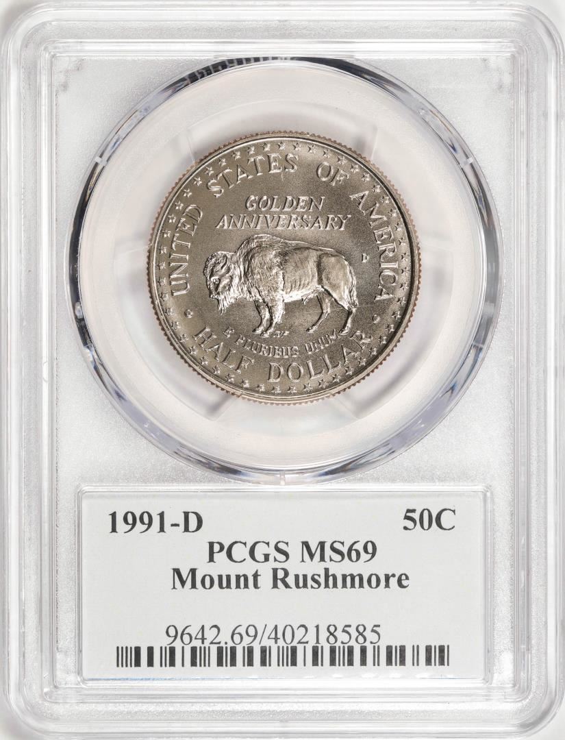 One 1991-D Mount Rushmore Half Dollar Coin PCGS MS69. PCGS Graded.