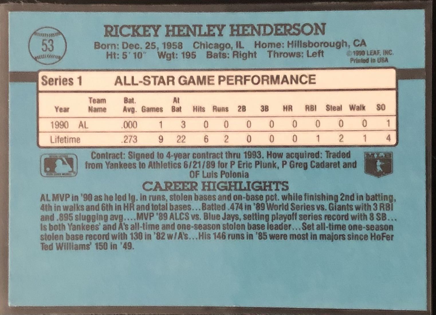 Card #53 MLB, baseball, hall of fame