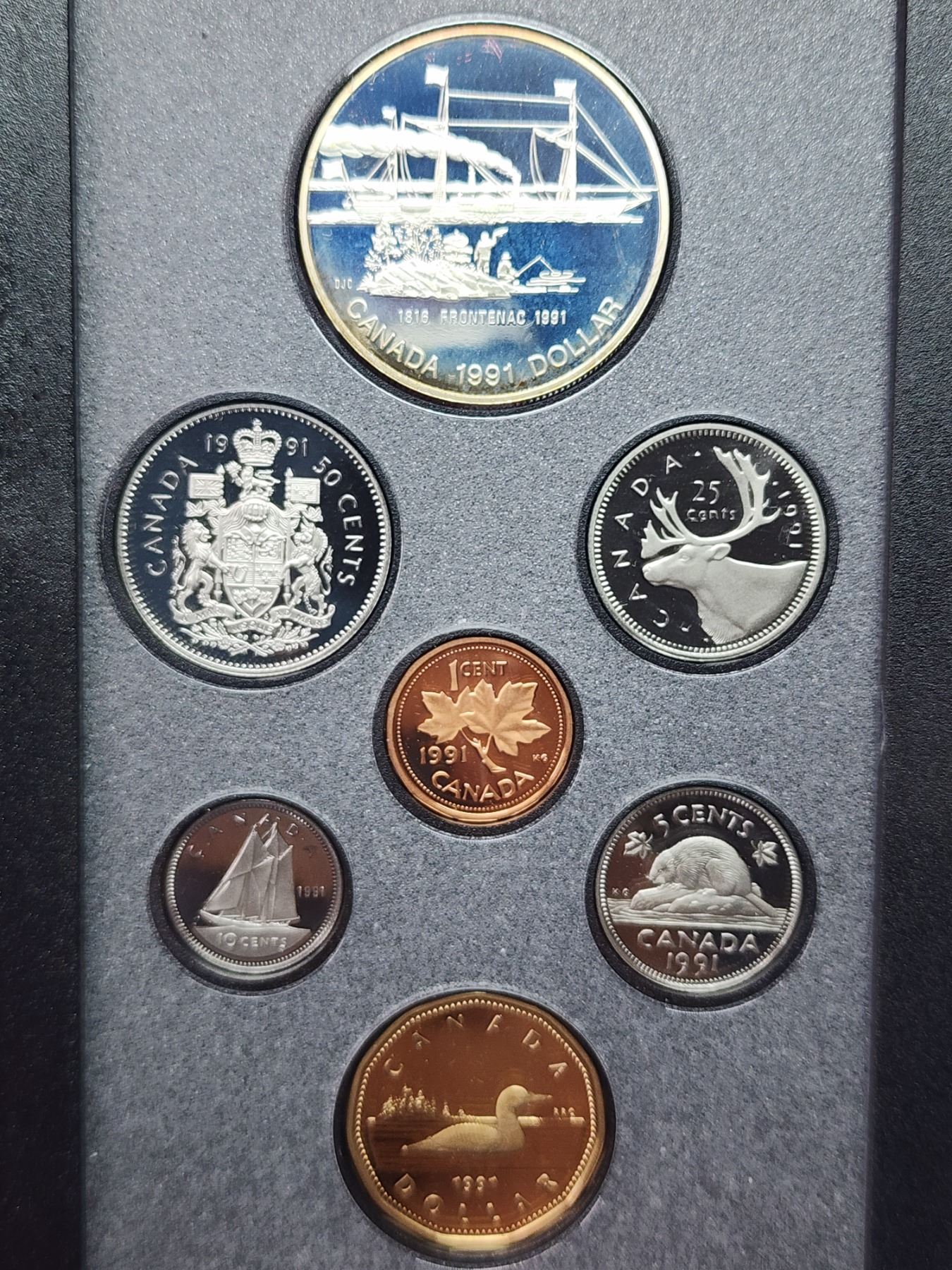 1991 Double dollar proof set. Includes "Frontenac" silver dollar