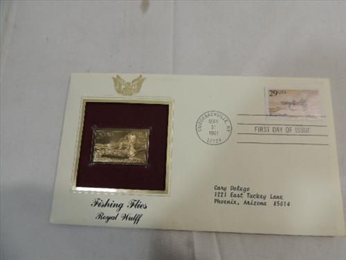 1991 FIRST DAY ISSUE COVER & 24 KT GF STAMP. ROYAL WUFF FISHING FLY. AS SHOWN. VIEW PICTURE FOR DETAIL.