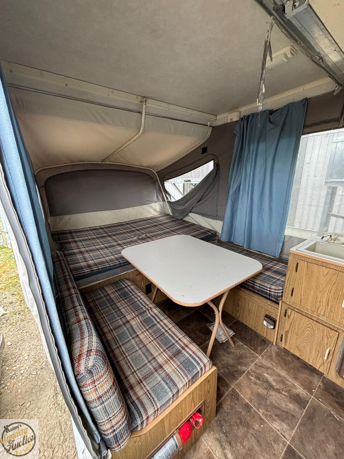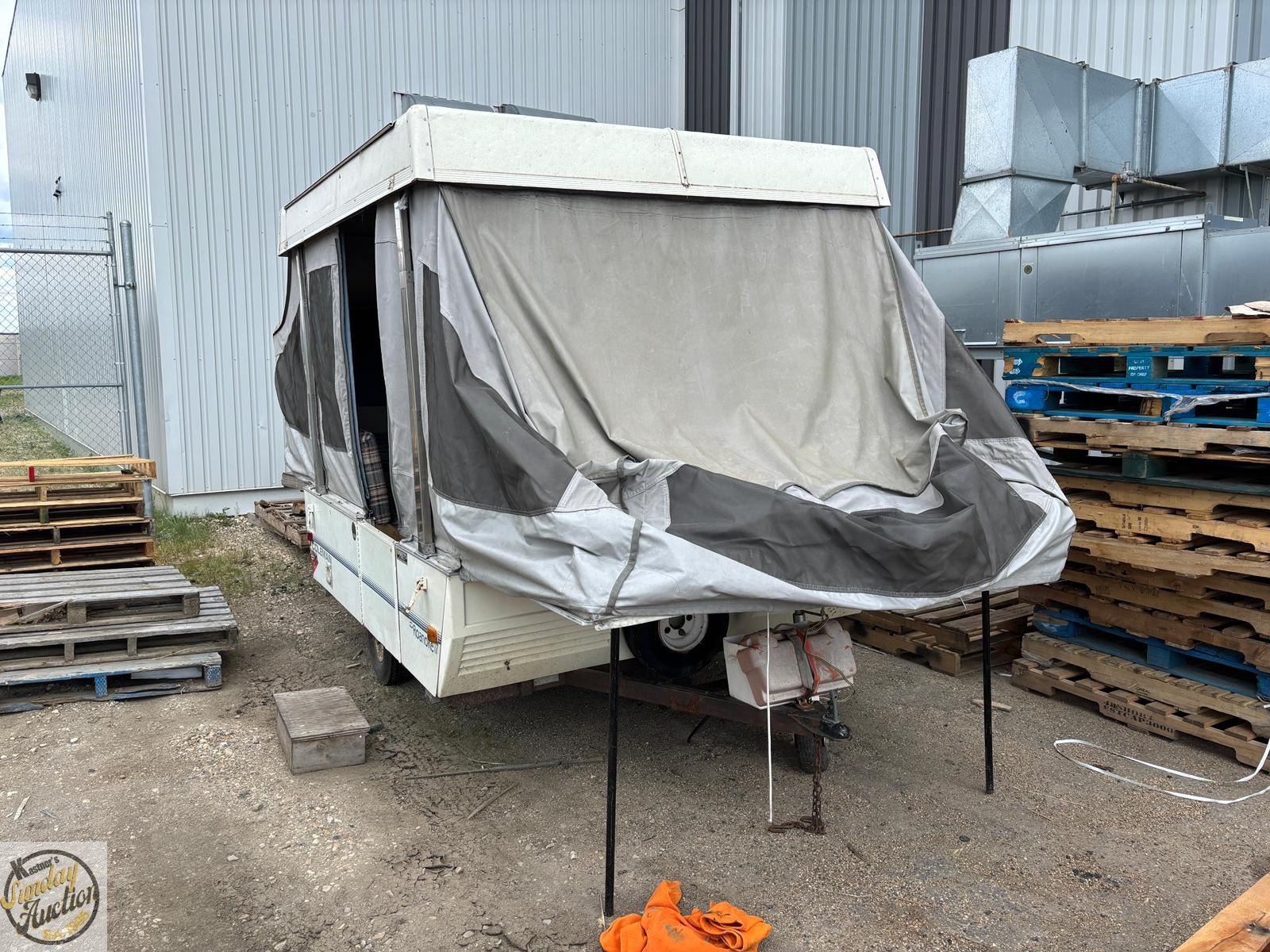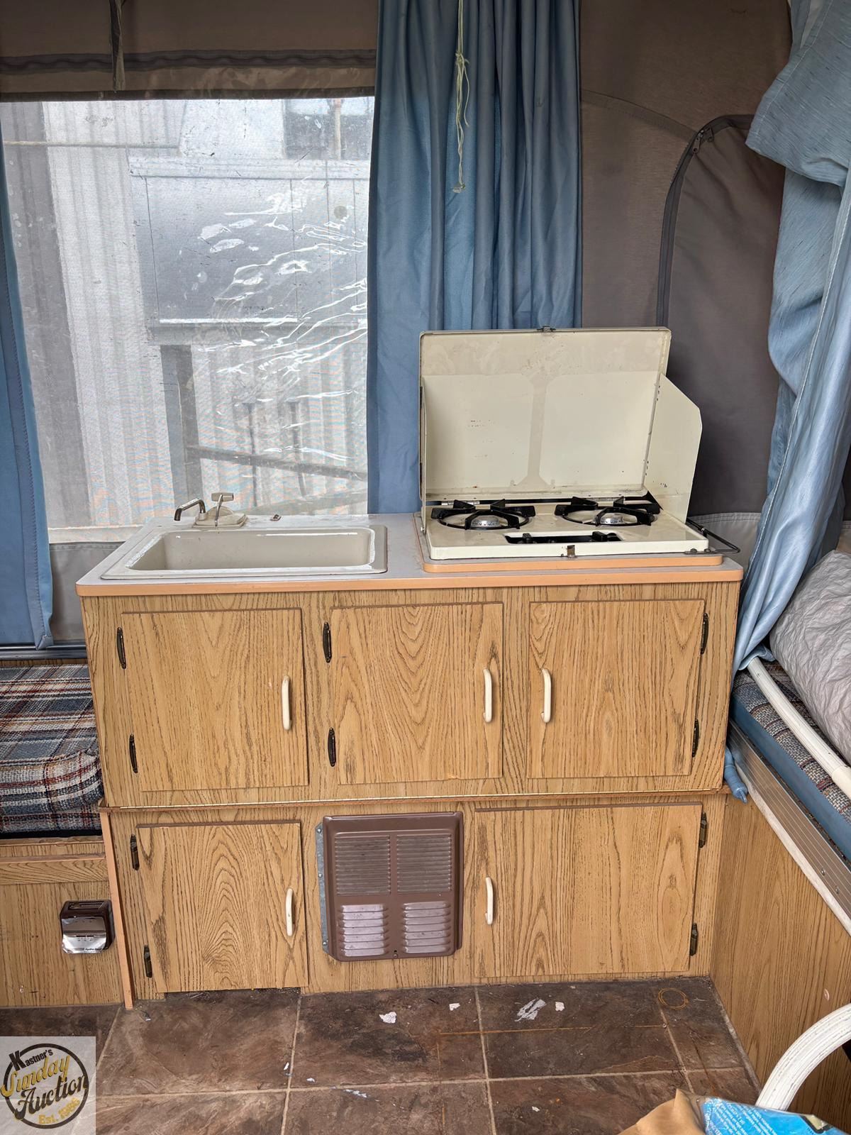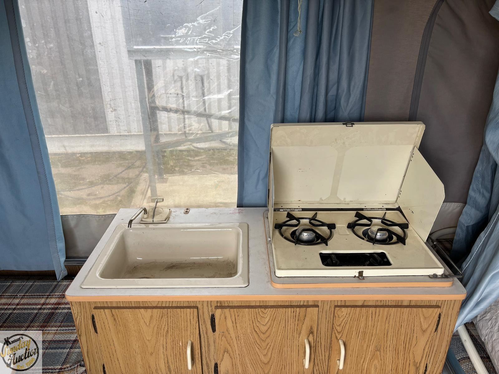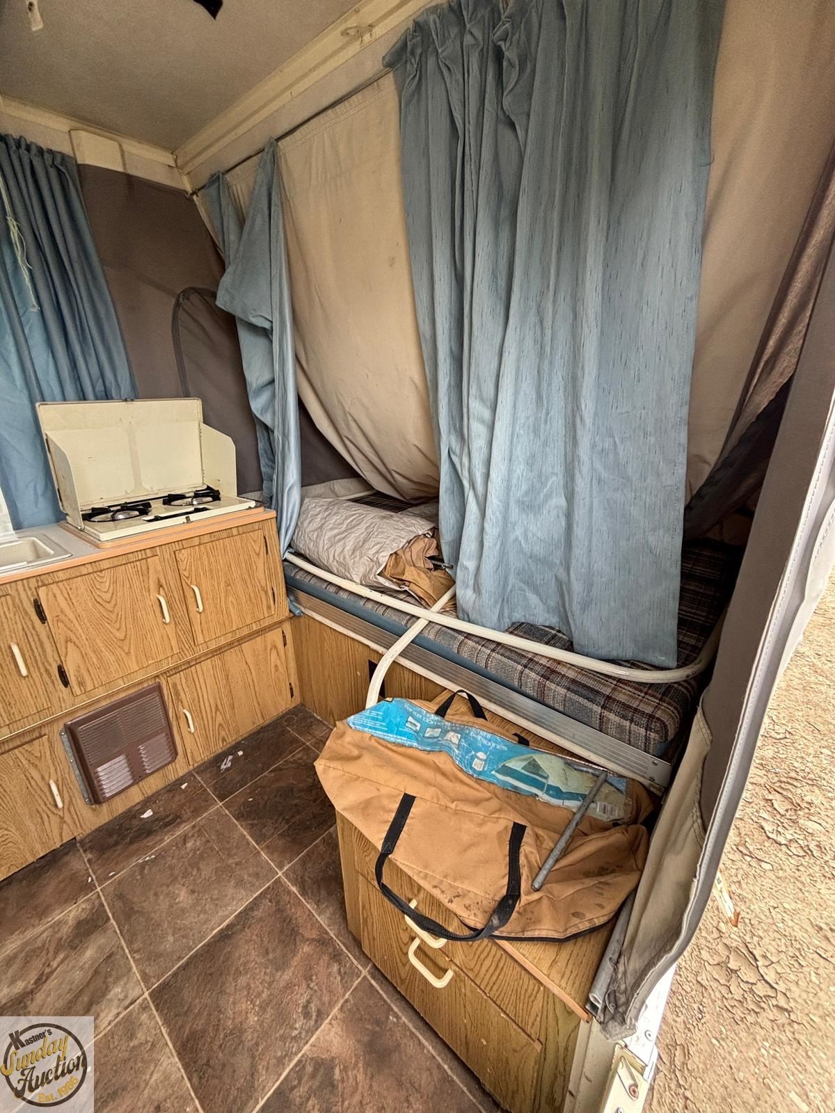 CAMPER FEATURES NORMAL ACTIVE STATUS, WIDTH IS 80", LENGTH WITH HITCH 144", WITHOUT HITCH 108", INCLUDES BED AND SMALL KITCHENETTE.