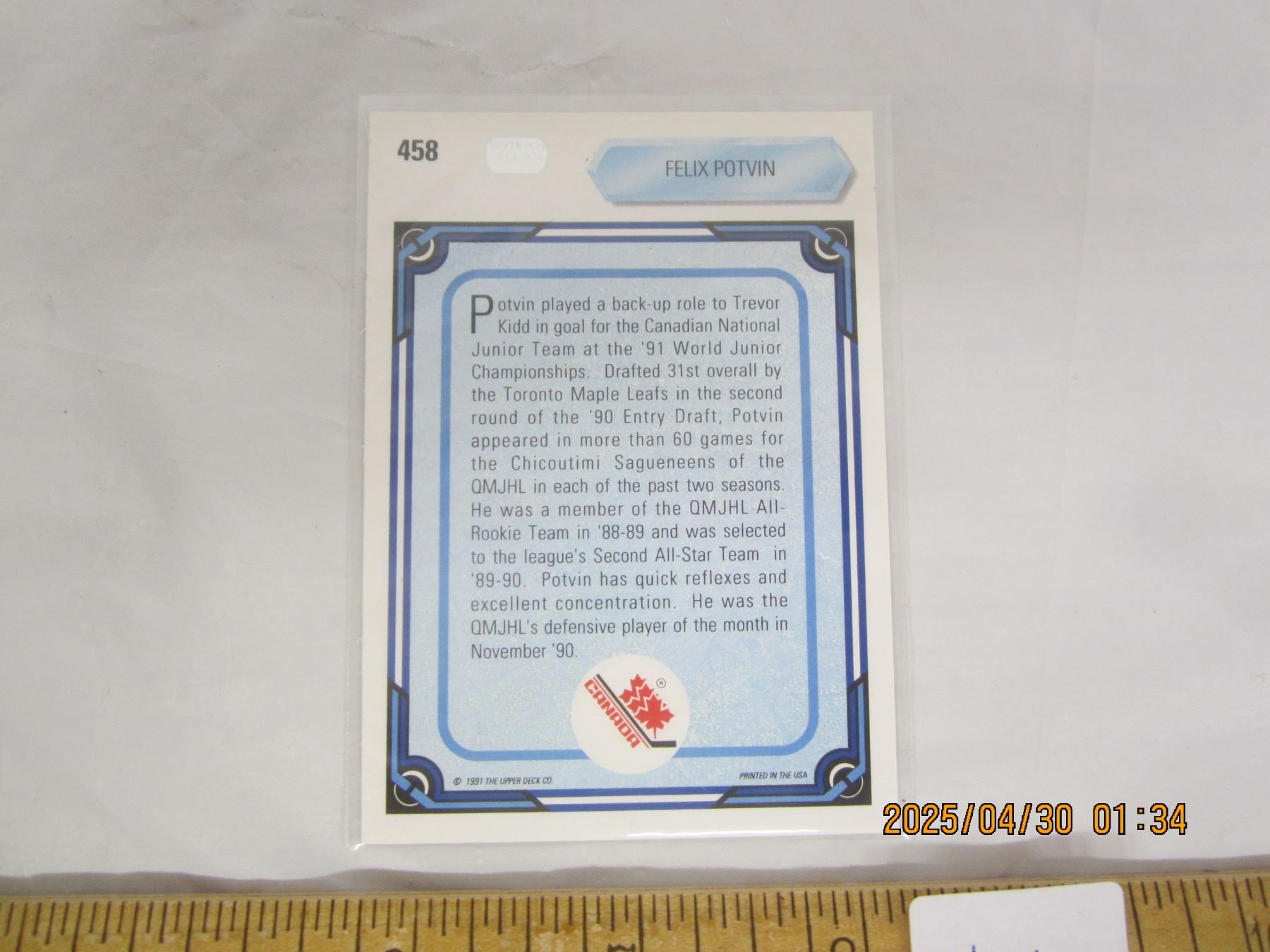 1991 Felix Potvin Upper Deck Rookie Card