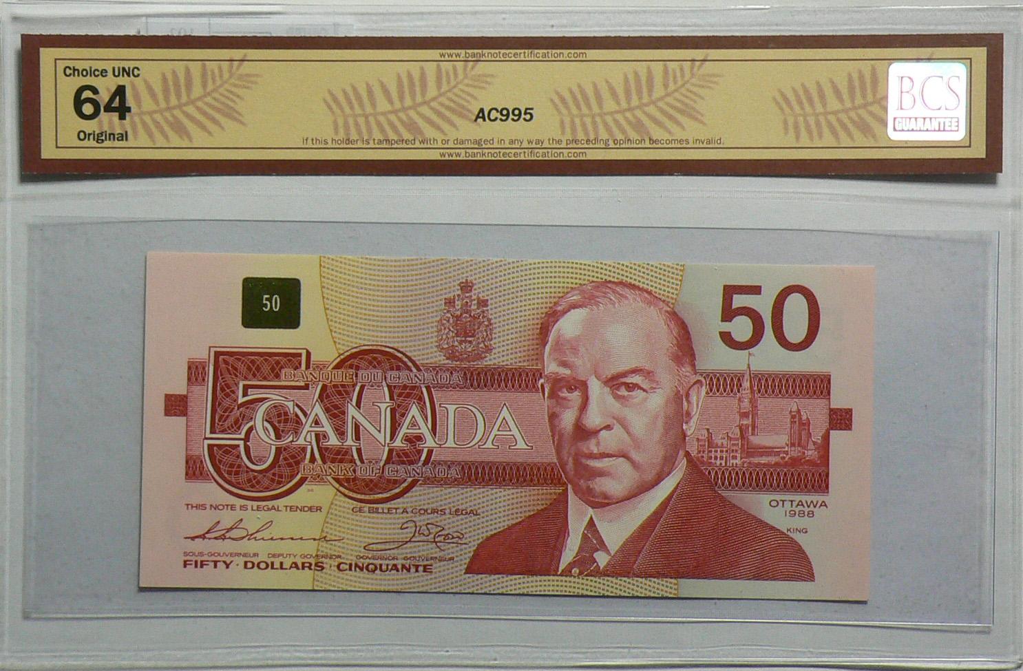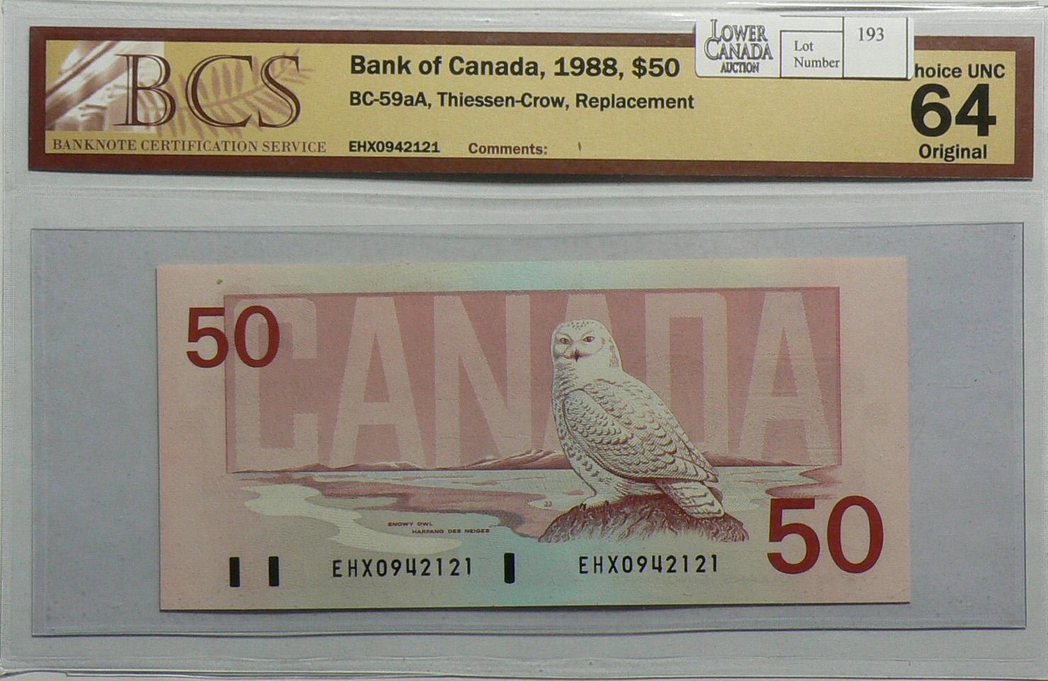 1991 Fifty Dollars Replacement, BC-59aA, BCS UNC-64, Thiessen Crow, serial EHX0942121, Below 1.7M.
