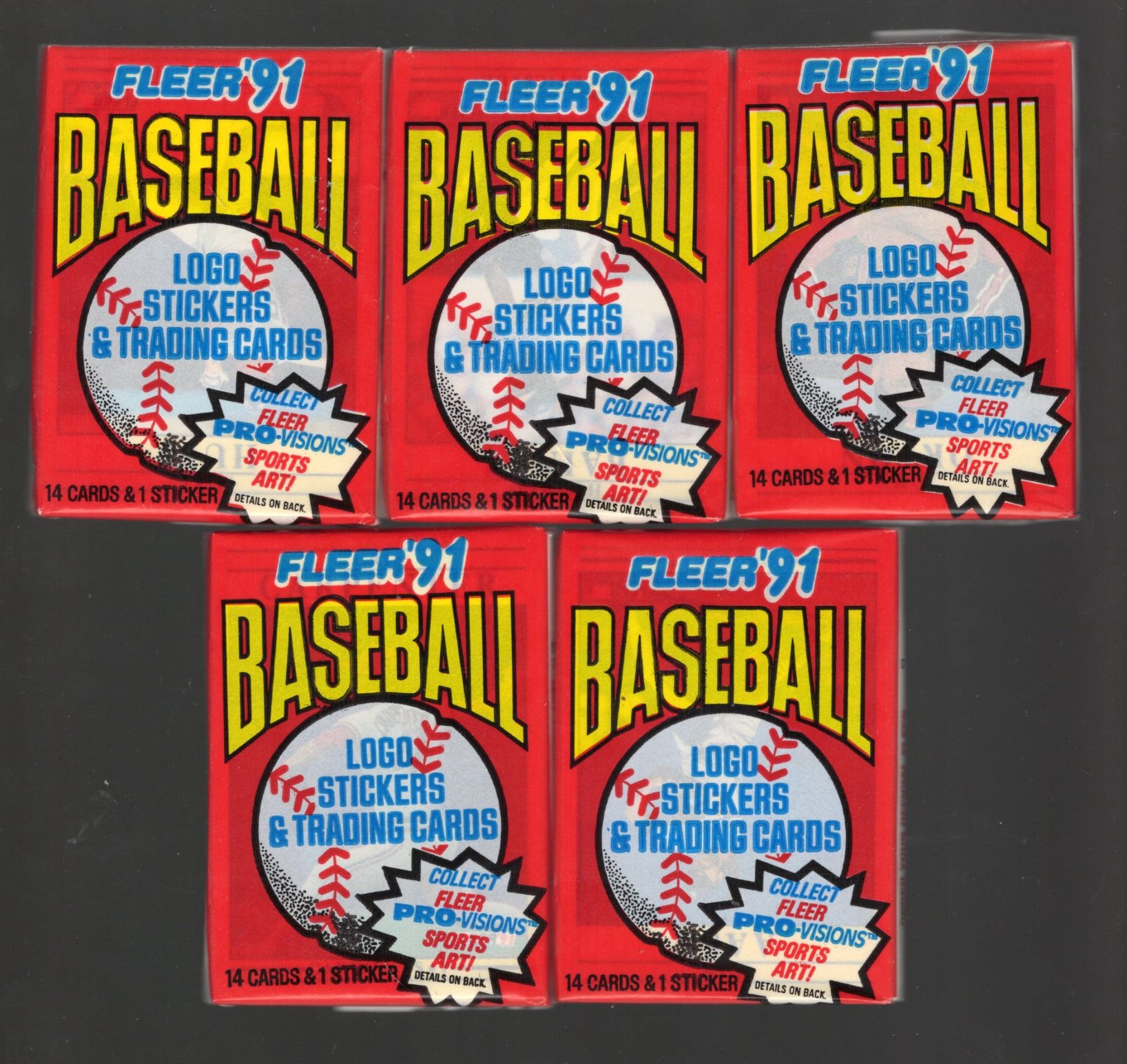 1991 Fleer Baseball Retail Box Packs 5 Count of 14 Cards + 1 Sticker