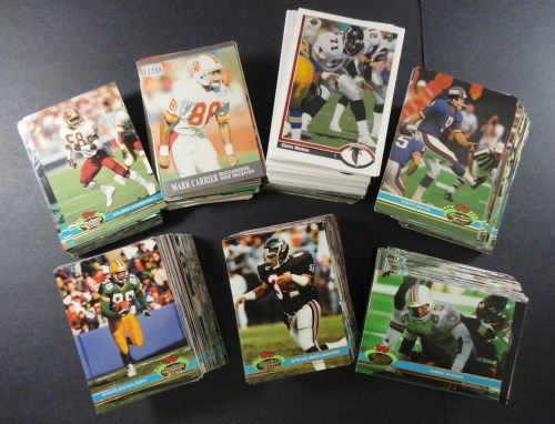 52-misc. Football Cards from 1991 (Fleer Ultra, Score, Pinnacle, Action Packed, & Topps). 91 misc. Upper Deck Football Cards 1991 some duplicates lots of Rookie Cards and Hall of Famers. 412 misc. Stadium Club Football Cards 1991 some duplicates. Est Value $40.00 - $60.00.