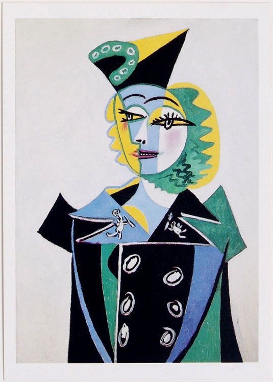 This is a vintage 1991 postcard featuring 1937 artwork by Pablo Picasso titled Portrait de Nusch Eluard . Nouvelles Images S.A. Offset printed in France. SIZE: Approx. 4" x 6". **MORE postcards from 1950s to 1990s (risque, nude, art sci-fi, oddities) in this and future auctions. From the estate of a big collector who traveled the world and had some very scare paper items. Many postcards from small independent underground printers in Germany, Holland, France, UK, etc.