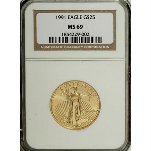 1991 G$25 Half-Ounce Gold Eagle MS69 NGC. NGC Cens